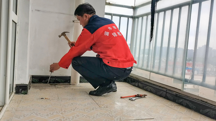 阳台漏水施工中